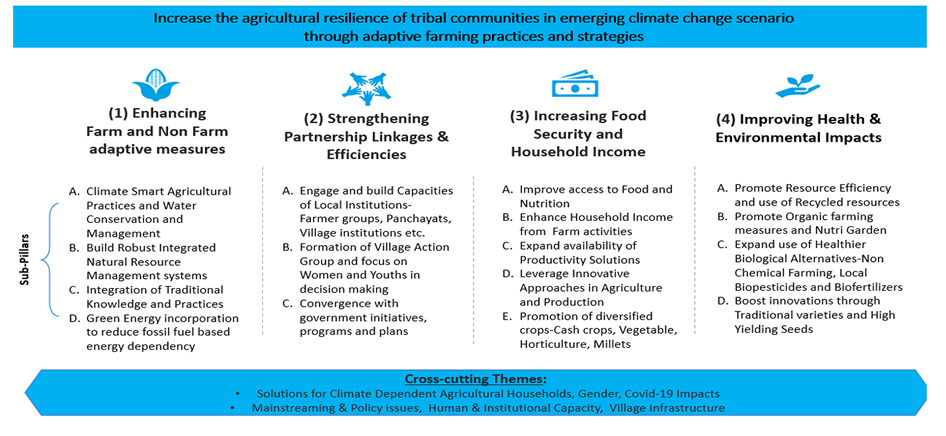 Concepts of integrated natural resource management, adaptive farming techniques through all season crops, locally available and recycled resources and indigenous and high yield seeds, and linkages with competitive animal husbandry practices is being promoted and strengthened as part of the program intervention. Convergence with agriculture department and sustainable assets creation through MGNREGA is being facilitated along with mainstreaming of climate change with government planning and programmes at local level.